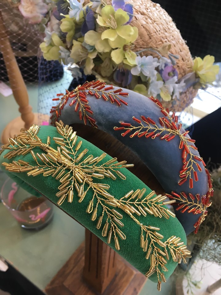 If you want this hairband to colour-match your outfit, please contact the studio. There are several options for embellishment colours, including pale pink, red, gold, silver and black. For a bespoke version of the Mazzy, please do not hesitate to contact us.